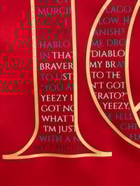 WITH A GRADIENT OF COLORS THAT REFLECT THE COLOR PALLETE FROM THE RUNAWAY VIDEO. INSIDE THE NUMBERS ARE LYRICS FROM POWER